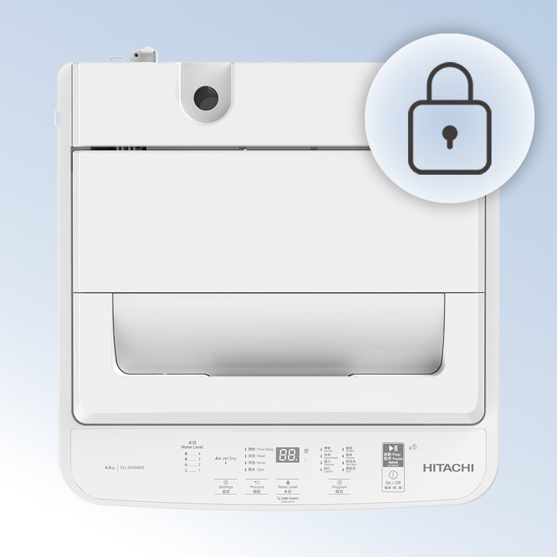 The top-loading washing machine features a secure lid lock that remains in place until the washing cycle completes, ensuring safe and uninterrupted operation for your peace of mind.